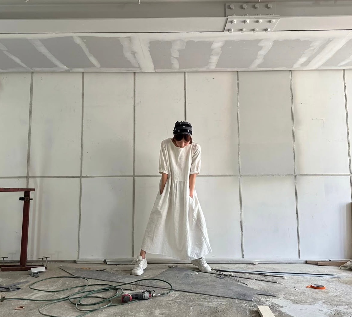 Monica farmのワンピースは、ナチュラルなシルエットと程よいリラックス感が魅力。シンプルながらもこだわりの詰まったデザインで、スニーカーとの相性も抜群です。