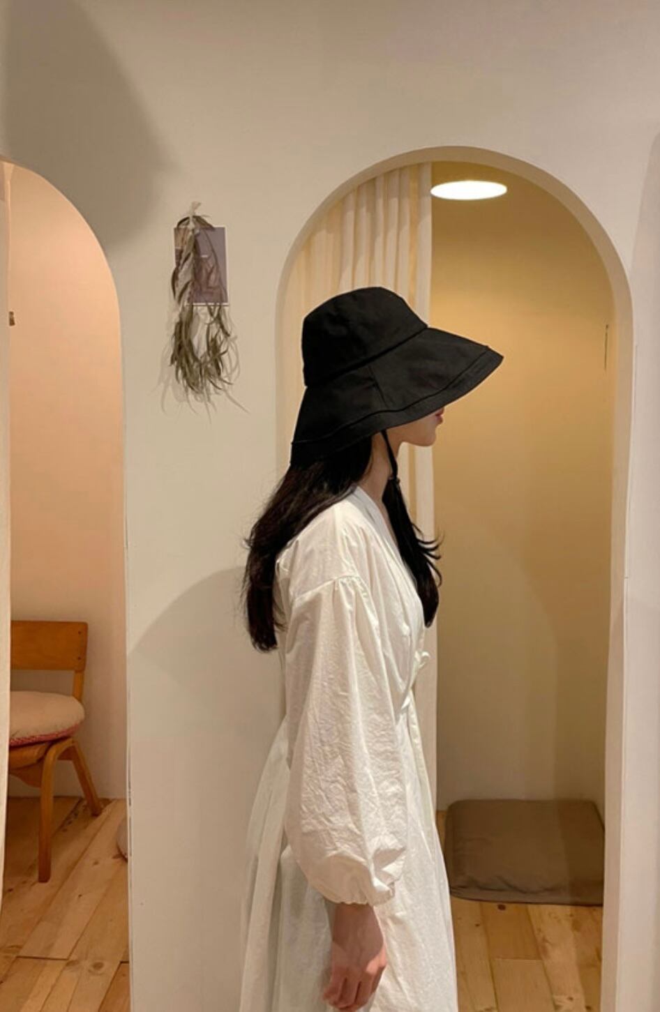適度な深さと広めのつばで、紫外線をしっかり遮断。さらに、つば部分にはワイヤーが入っているため、自由に形をアレンジでき、形状を保ちながらスタイリッシュに仕上げることができます。
