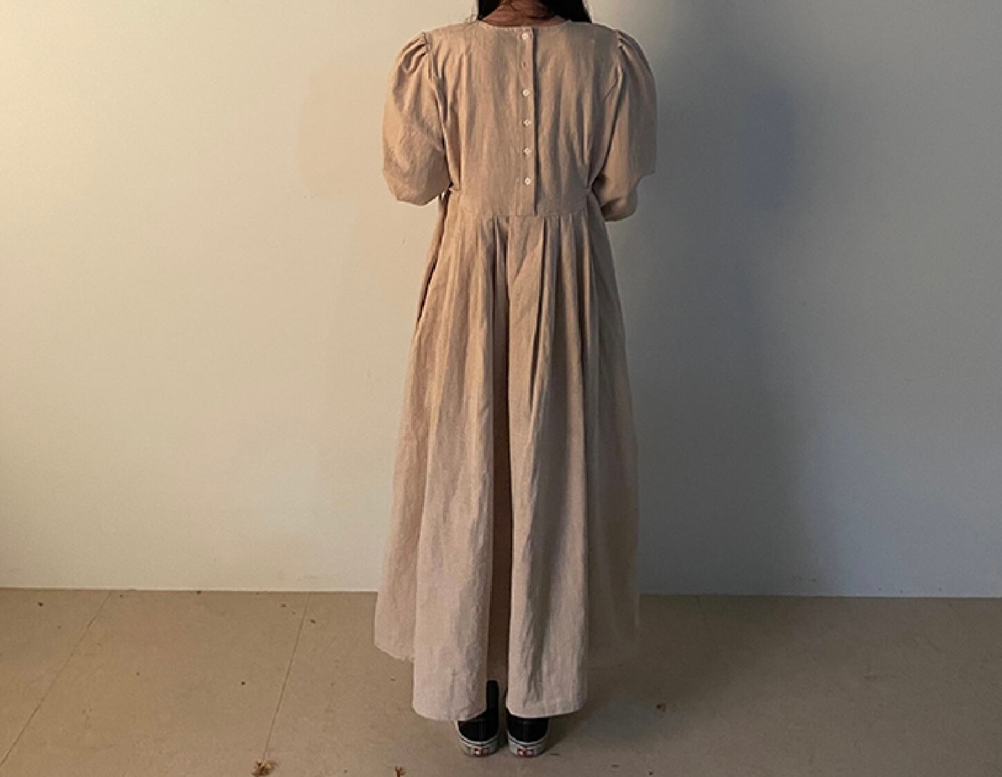 ナチュラルでリラックス感のあるデザインが特徴で、季節を問わずご着用いただける万能なワンピース。シンプルながらも時を超えて愛され続ける、所蔵価値の高い一着です。