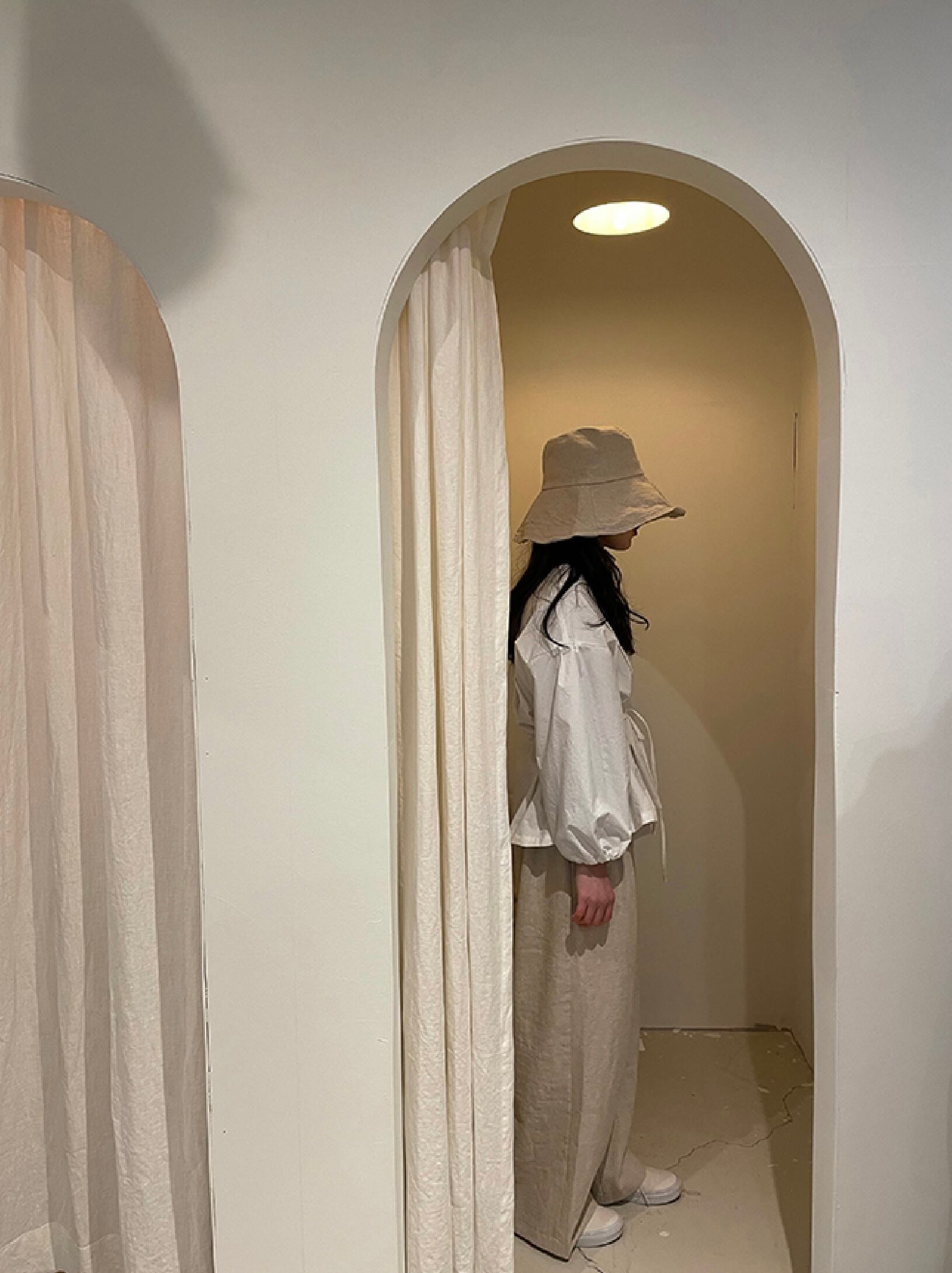 リネンコットン混紡素材を採用し、通気性抜群で快適な着用感を実現。つばの先にはワイヤーが内蔵されており、形を自由にアレンジしてそのままキープできます。ゆったりとしたフィット感で、どんなコーディネートにも合わせやすい万能アイテムです。