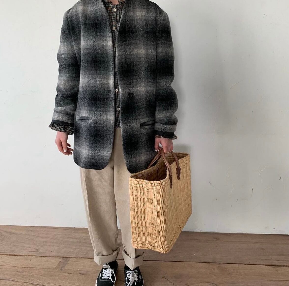 【linen check coat】