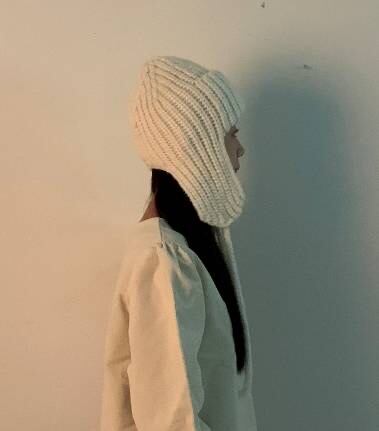 ふんわりとしたニットが耳を優しく包み込み、寒い季節でも暖かさと可愛らしさを両立した「Fogny Earplugs Hat」。柔らかいホワイトカラーと魅力的な素材が特徴で、ショールームでも人気の高いアイテムです。
