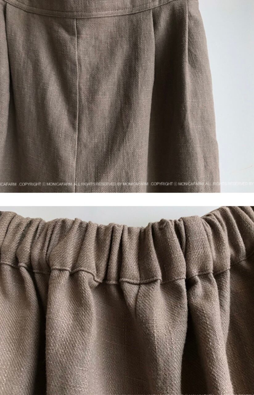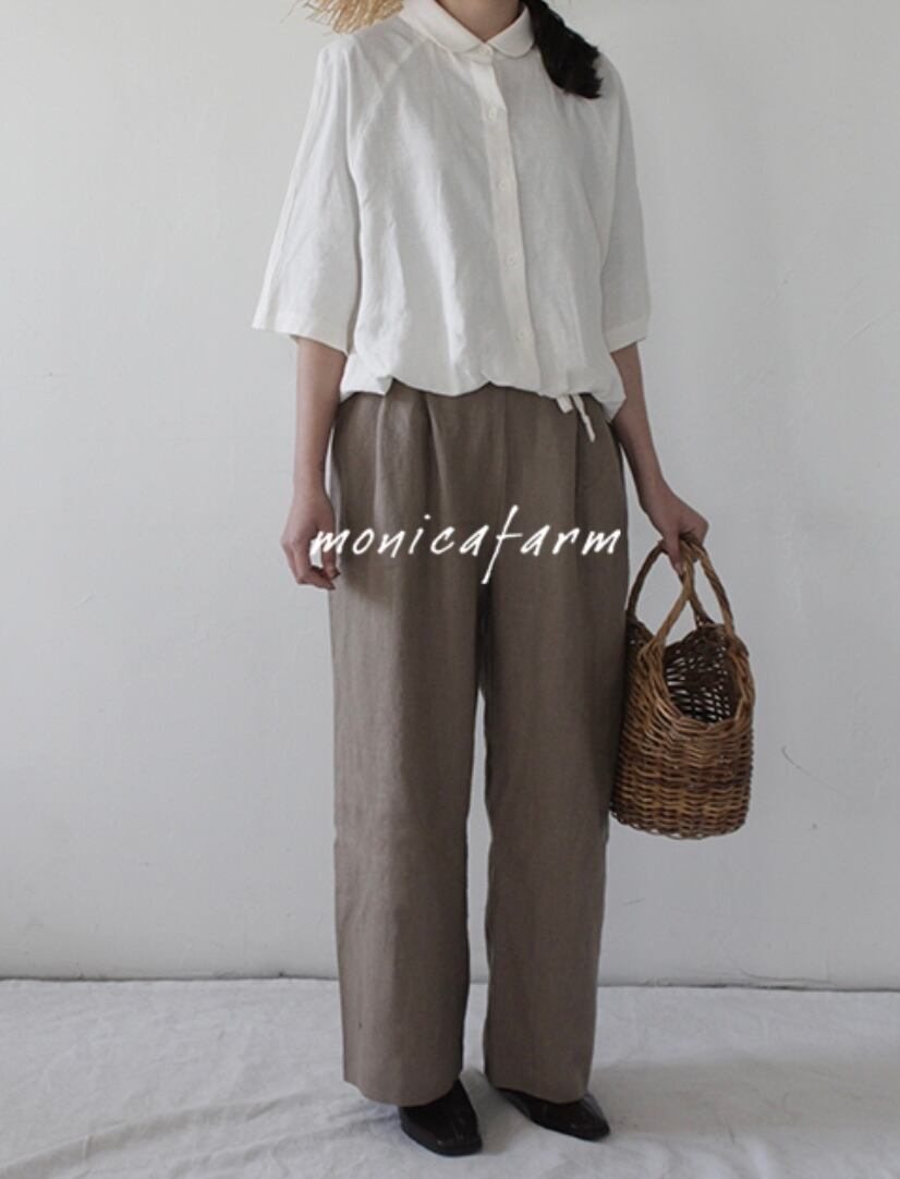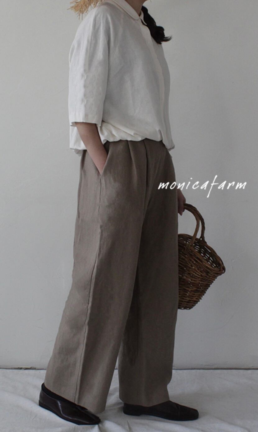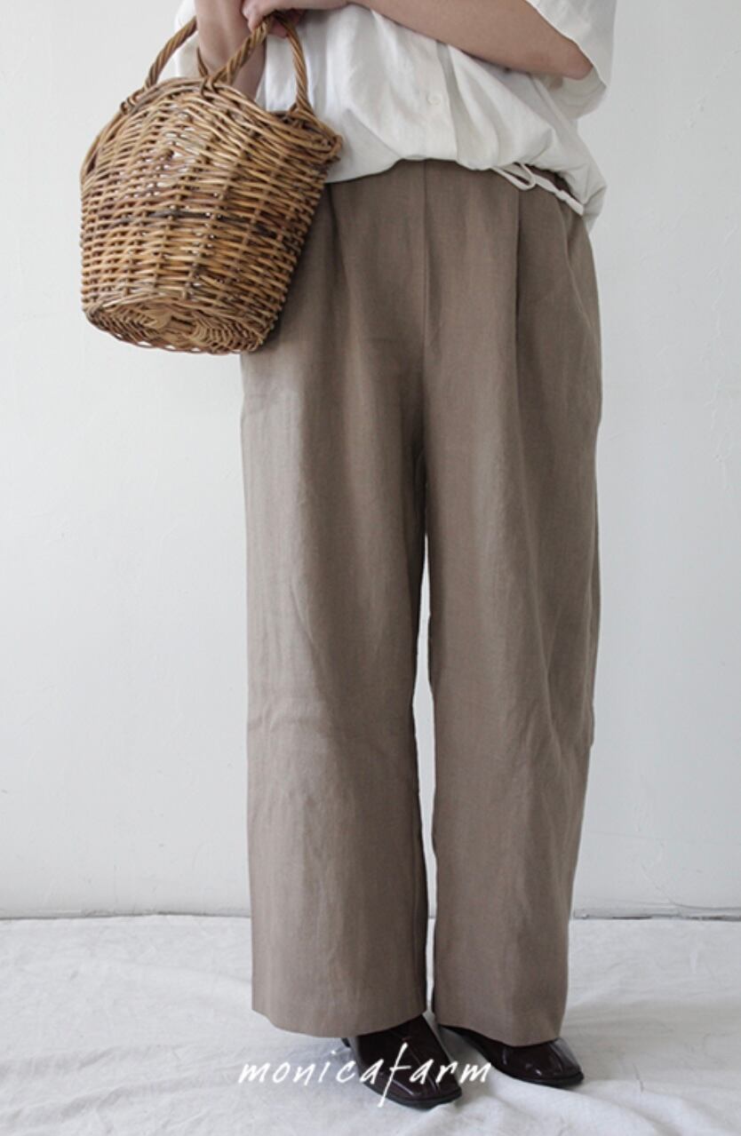 楽な着心地を追求したウエストのバンディング仕様と、ワイドフィットがスリム見えを叶えるデザイン。どんなシーンにも合わせやすい、Monica Farmの数少ないパンツラインのひとつです。
