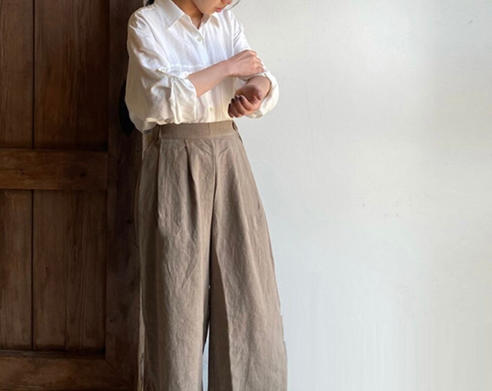 既存のメイビーバンディングパンツとデザイン・サイズはそのままに、新たに落ち着いたトーンのカラーをセレクトしました。毎日のコーディネートに取り入れやすいこのアイテムを、ぜひお好みの色でお楽しみください。