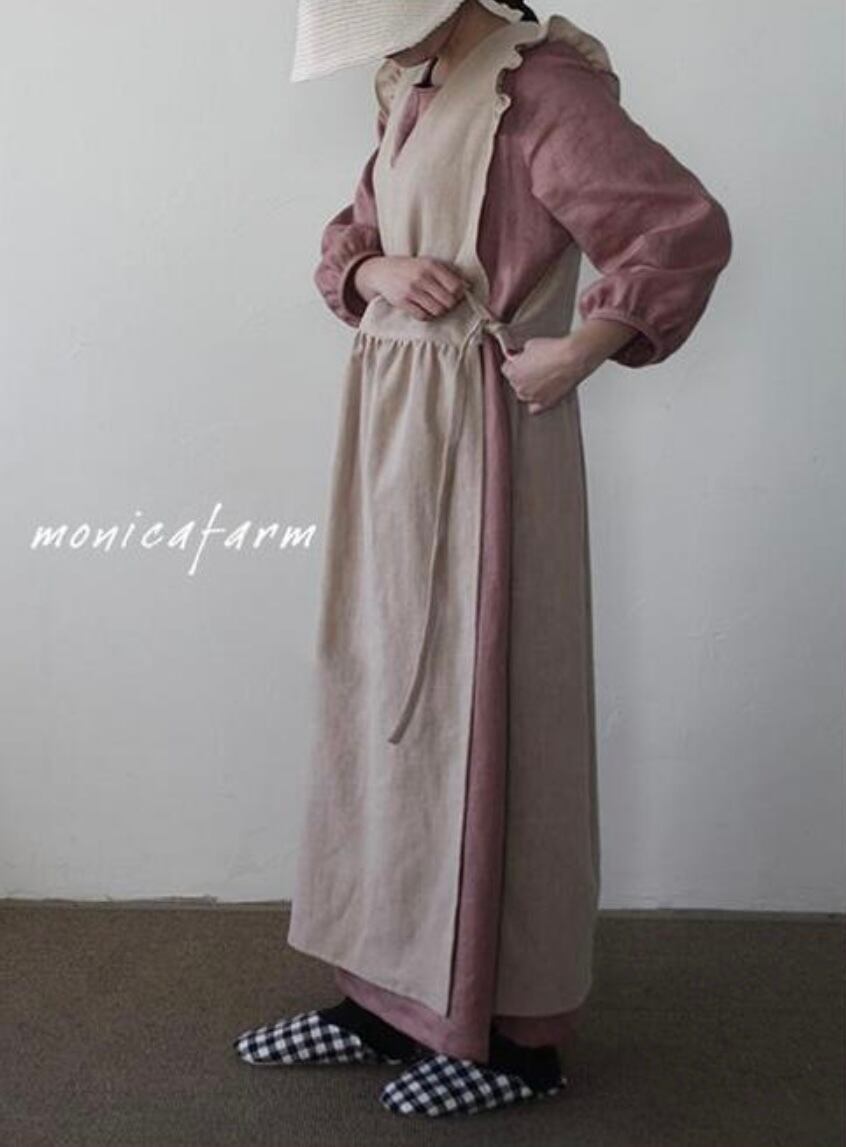 春の新作「ママスエプロン(ホワイト)」は、上品なフリルディテールが特徴です。サイズ調整が可能な腰ひもデザインで、どなたでも簡単にフィットする仕様となっています。少女らしい雰囲気で、エマのワンピースとのレイヤードコーディネートにもぴったりです。