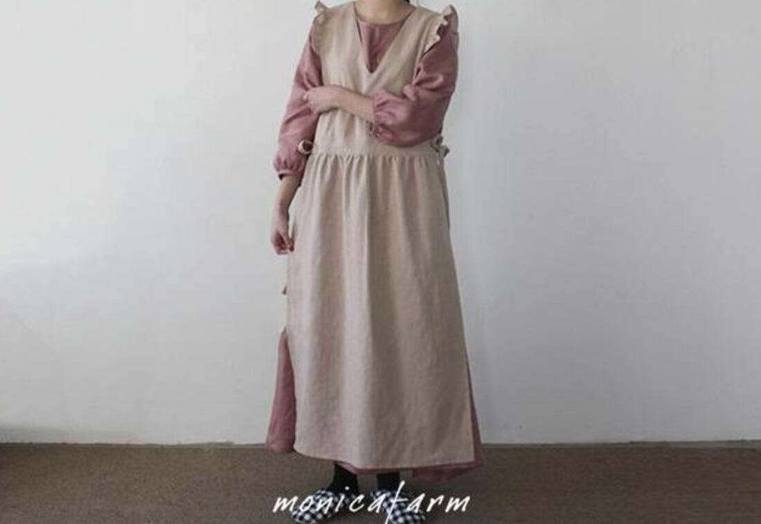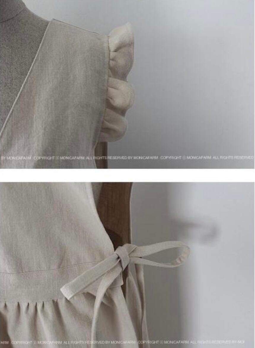素材には、従来のママスエプロンよりも組織感のあるリネンを使用し、ナチュラルな質感と通気性の良さを実現。サイズに関係なく、快適にご着用いただけます。
