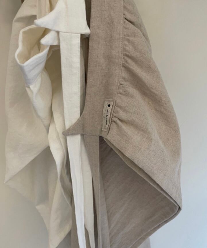 上質で柔らかなリネン生地を使用した「オルセー ウエストエプロン」。腰部分のとがったデザインがポイントで、シンプルながらも洗練された印象を与えます。ホワイトとナチュラルの2色展開で、どちらもデイリーコーデに取り入れやすいカラーです。