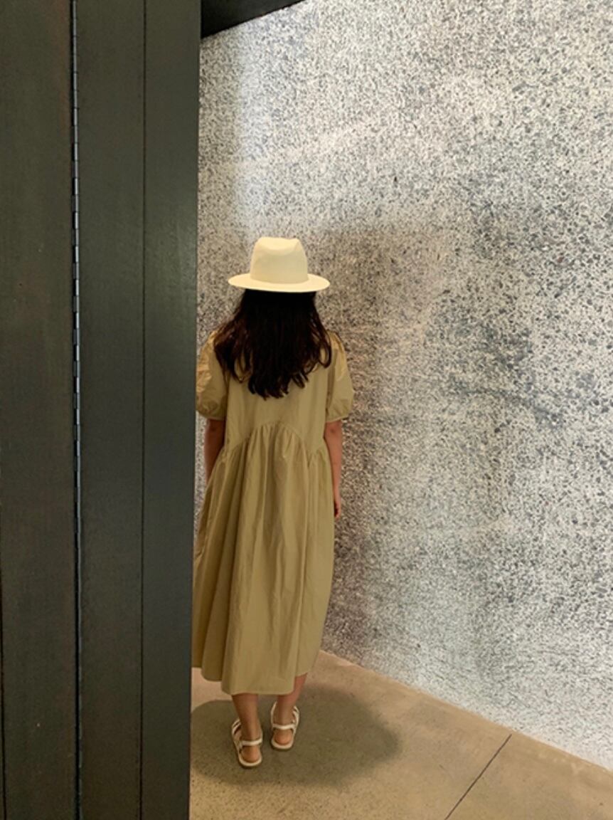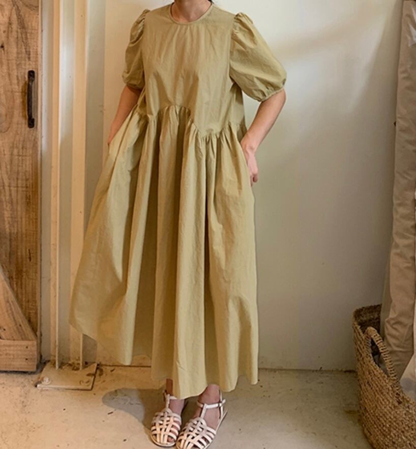 ふんわりとしたシルエットが魅力の**「綿菓子ワンピース」**。今シーズン、多くの方に愛された一着です。