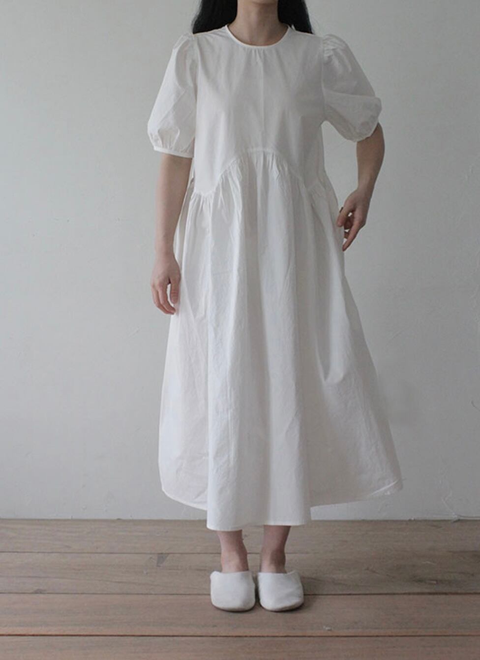 ふんわりとしたシルエットが魅力の**「綿菓子ワンピース」**。今シーズン、多くの方に愛された一着です。